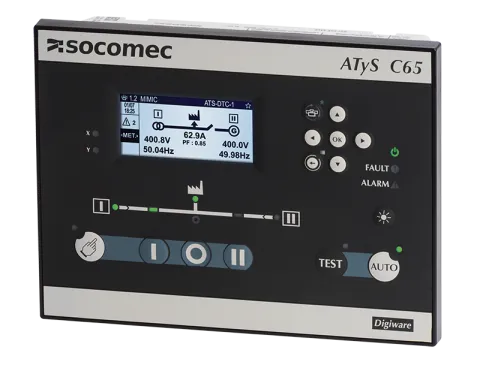| Beschreibung | ATSE-Steuerung mit Kommunikation ATyS C65 Schalttyp I-0-II erweiterte Funktionen können zur Steuerung eines fernbedienten Umschalters verwendet werden, wie ATyS r, ATyS S und ATyS d M |
