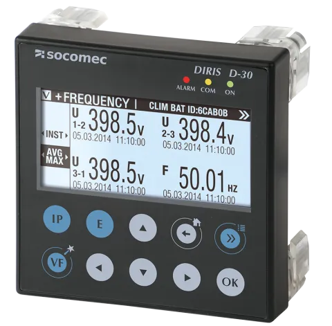 | Beschreibung | Multifunktions-Leistungsmesser DIRIS D-30 Einpunktanzeige für DIRIS B PMD und DIRIS Digiware I-4x Module, 96x96 mm, Kommunikationsanschlüsse RJ9 - USB, arbeitet mit RJ12 Smart-Stromsensoren |