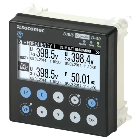 | Beschreibung | Mehrpunktanzeige und Kommunikationsgateway DIRIS Digiware D-50 Modbus RTU / TCP Kommunikationsprotokolle RS485 Ethernet-Kommunikationsanschlüsse mit integriertem WEB-CONFIG Bluetooth-Anschluss |