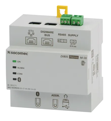 | Beschreibung | Communication gateway interface for DIRIS Digiware system DIRIS Digiware M-50 with Ethernet gateway (with Bluetooth connectivity) and Modbus communication protocols |