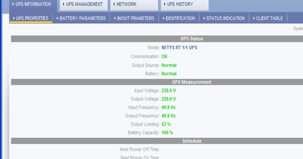 Der RT VISION-Netzwerkadapter ermöglicht den direkten Anschluss von USV-Modellen der NETYS RT-Serie an ein Ethernet-Netzwerk und ermöglicht so die Fernverwaltung der USV – mit geschütztem Zugriff – über einen Webbrowser, eine TELNET-Schnittstelle oder eine NMS-Anwendung über SNMP Protokoll.